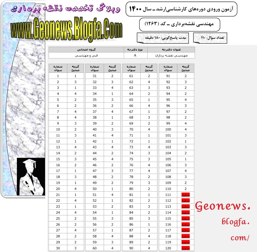 لینک مستقیم فایل سوالات و پاسخنامه کنکورهای کارشناسی ارشد نقشه برداری + دانلود سوالات و پاسخ کلیدی کنکور ارشد سراسری مهندسی نقشه برداری + نمونه سوالات کنکور ارشد نقشه برداری + سوالات کنکور و پاسخ نامه کارشناسی ارشد نقشه برداری + دانلود نمونه سوالات کارشناسی ارشد نقشه برداری + سوالات کنکور ارشد مهندسی نقشه برداری + نمونه سوالات نقشه برداری کارشناسی + نمونه سوالات کارشناسی ارشد فنی مهندسی